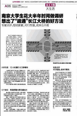 每天早、晚高峰,在南京长江大桥上堵得心烦意乱,已经成了不少人生活中的少不了的一个组成部分。如何让长江大桥变得通畅起来,一直是个“老大难”的问题。bat365中文官方网站的学生从去年开始“啃”起了这块“硬骨头”,用了大半年的时间进行调研分析,提出了一套创新的改良方案。其实,学生们的点子听起来并不复杂,也不需要拓宽道路,只是将大桥北路的道路进行重新规划。根据电脑仿真模拟,改进的效果还真不错,甚至得到了专家的好评。