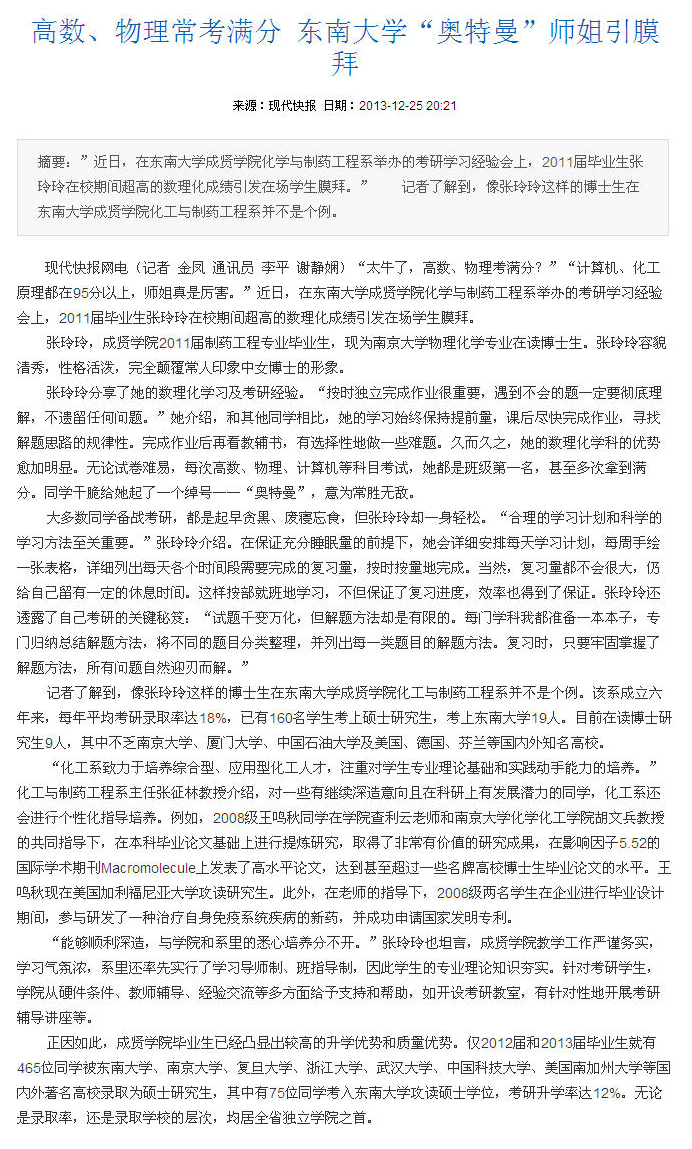 【现代快报网】高数、物理常考满分 bat365中文官方网站“奥特曼”师姐引膜拜