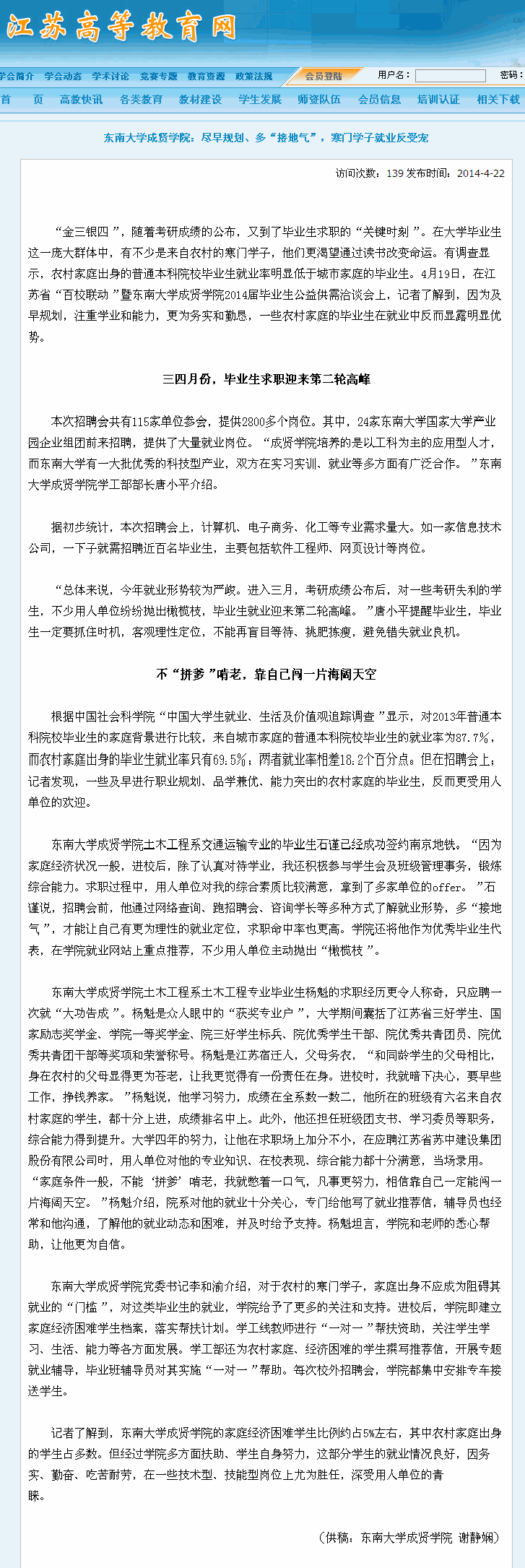 【江苏高等教育网】bat365中文官方网站:尽早规划、多“接地气”,寒门学子就业反受宠