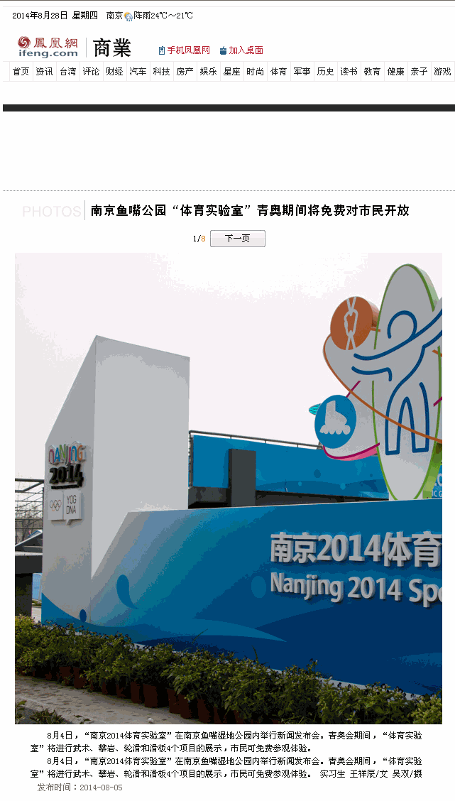 【凤凰网】南京鱼嘴公园“体育实验室”青奥期间将免费对市民开放