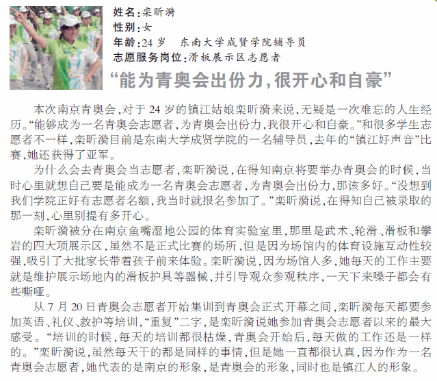 【京江时报】“能为青奥会出份力,很开心和自豪”