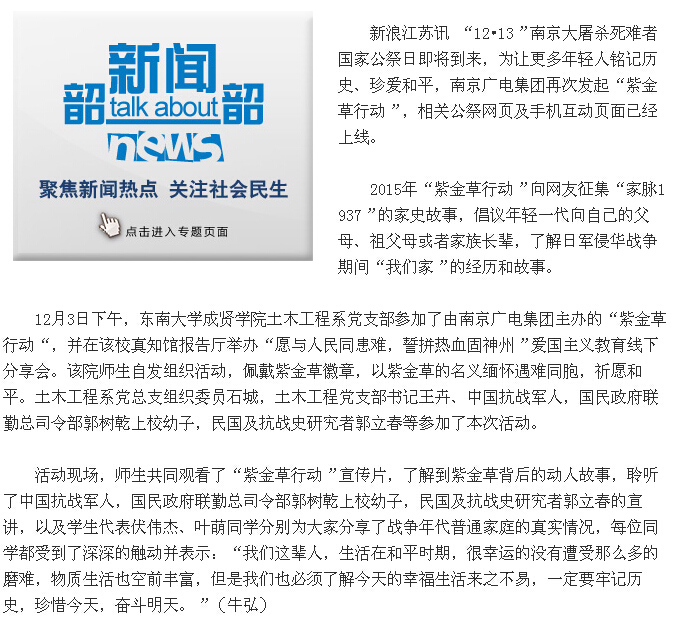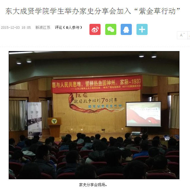 【新浪网】东大bat365中文官方网站学生举办家史分享会加入“紫金草行动”
