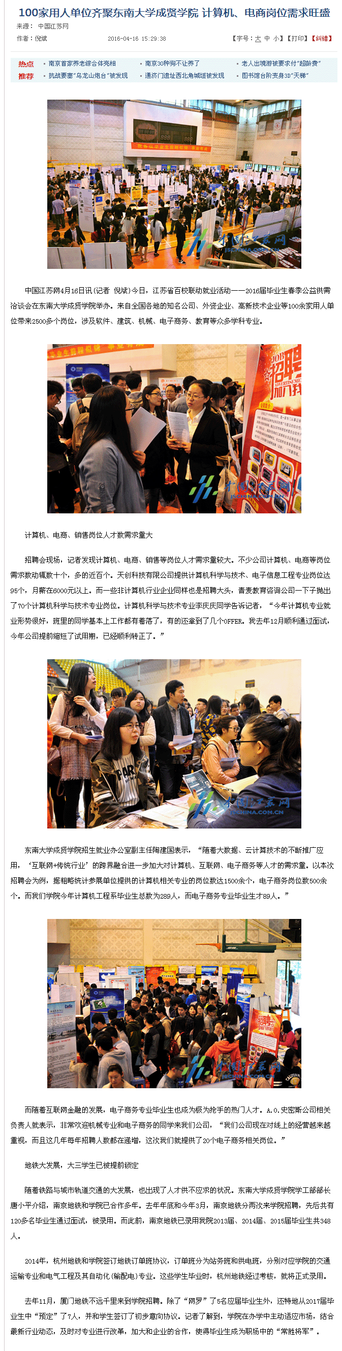【中国江苏网】100家用人单位齐聚bat365中文官方网站 计算机、电商岗位需求旺盛