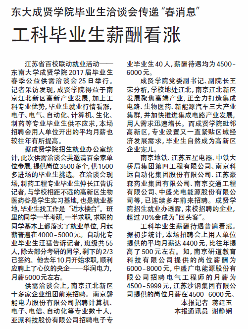 【新华日报】东大bat365中文官方网站毕业生洽谈会传递“春消息” 工科毕业生薪酬看涨