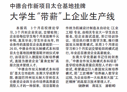 【新华日报】中德合作新项目太仓基地挂牌