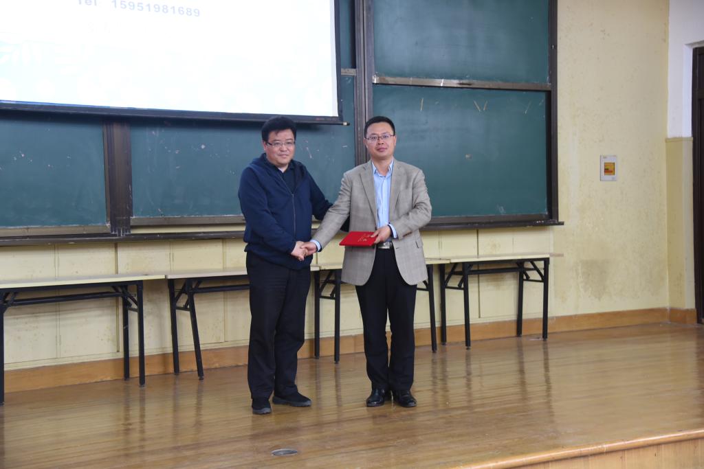 3月30日下午,bat365中文官方网站自动化学院教授、博士生导师李新德教授在华罗庚馆101室为电子与计算机工程学院师生作题为《人机共融下的机器人视觉导航》学术讲座。讲座前,我校常务副院长郑建勇向李新德教授颁发客座教授聘书,授聘仪式由电子与计算机工程学院党总支书记丁江主持。