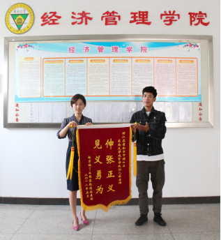 我校经济管理学院教师收到见义勇为锦旗和感谢信