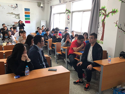 在两节课的时间里,德迅公司人力资源部北亚区经理Mr. Jason Lee就企业概况和求职应聘技巧,为2015级物流管理专业的学生进行了生动有趣的讲解。讲授过程中还安排了模拟面试环节,两位学生扮演应聘者,接受了企业的面试并对面试过程发表了自己的感想。