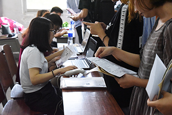 迎新当天,学校党委书记徐悦、常务副院长郑建勇,党委副书记、副院长王荣,在党政办主任周伟荣的陪同下来到新生报到现场,详细了解新生报到情况,亲切看望前来报到的新生和家长们,并慰问参与迎新工作的师生员工。