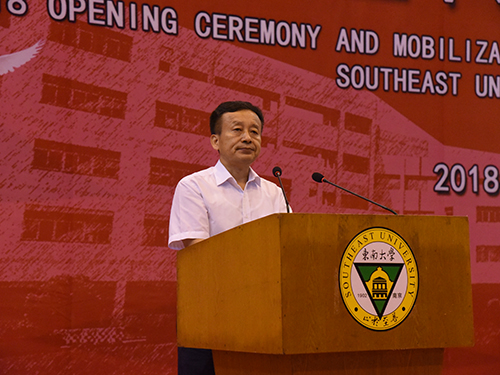 常务副院长郑建勇教授宣读获得2017—2018学年江苏省表彰的“三好学生”、优秀学生干部和先进班集体的喜报。左惟书记,郑家茂院长为获奖学生和集体代表颁奖。