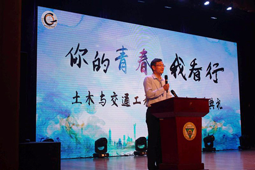 9月26日,我校土木与交通工程学院在大学生活动中心313成功举办主题为“你的青春,我看行”2018级新生开学典礼。学校党委书记徐悦,党委副书记、副院长王荣,学生处处长唐小平,土木与交通工程学院院长郭正兴以及其他院系党总支领导、优秀校友代表、合作单位负责人,土木与交通工程学院全体教职工,2018级新生和部分新生家长共计600余人参加了此次活动。