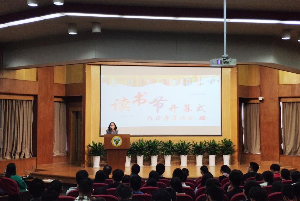 会议伊始,图书馆馆长封晓倩宣布读书节开幕。徐书记首先致辞,为全场的同学全面解读读书的意义;鼓励同学们多读书、读好书,希望各位能通过不断的阅读,厚积人文底蕴,开拓思维宽度,丰富善意和情感,以此去创造自己的未来。