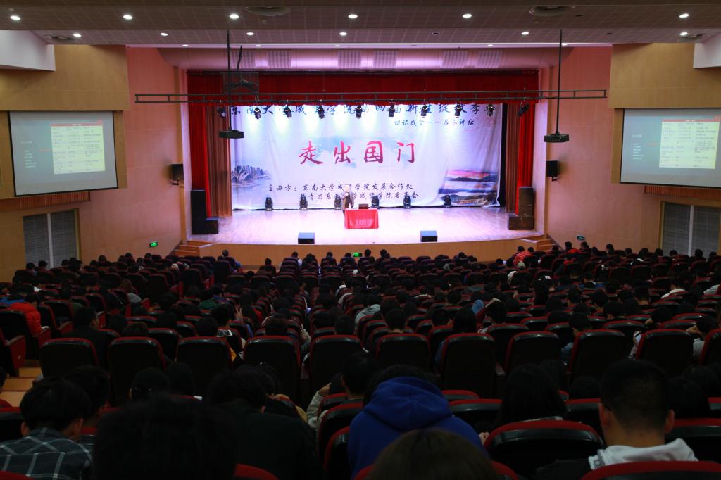 11月15日,由发展合作处和校团委主办的“走出国门”讲座在综合楼报告厅举行。中国驻澳大利亚墨尔本总领事馆前教育领事、bat365中文官方网站海外教育学院副院长杨智勇担任主讲,全校600余名学生共同聆听讲座。