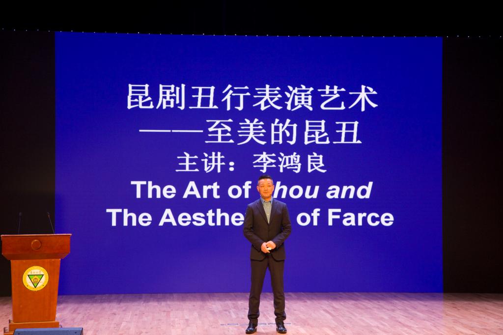 11月21日,由校团委主办的“至美的昆丑——昆剧丑角的表演特色和雅俗共赏的时代精神”讲座在综合楼报告厅举行。江苏省演艺集团昆剧院院长、国家一级演员、中国戏剧“梅花奖”获得者、著名昆曲表演艺术家李鸿良担任主讲,与全校700余名师生一同捕捉昆曲脉络,分享戏韵人生。