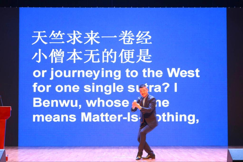 讲座伊始,李老师以幽默风趣的开场白迅速燃起全场的热情,从核心价值观谈到我们必须要有信仰,民族才有希望,国家有力量,必须要有先进文化作为引领,坚定文化自信。随后,李老师通过丰富的国内外演出经历,指出了当今中国文化缺失的现状和西方文化渗透的危机愈演愈烈,引导学生意识到文化“软实力”的重要性。接下来,李老师向同学们介绍了昆剧的发展史,诙谐幽默地和大家分享了自己从艺昆丑的演出经历和心得,李老师眼中的丑角不仅代表着一门技艺,更体现出戏曲之外的涵养和正能量。讲座中,李老师倾情表演了《孽海记·双下山》等多部作品,演绎出不同品行、年龄甚至性别的角色特征,展现了扎实的基本功底,精湛的演技征服了全场观众,博得经久不息的喝彩与掌声。讲座最后,李老师耐心细致地解答同学们提出的疑问