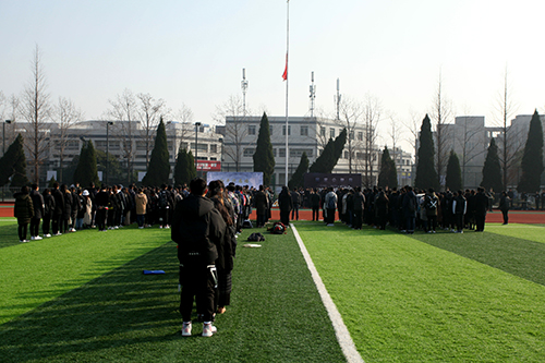 早上七点整,国旗团支部在操场举行了升国旗、降半旗仪式,支部全体成员静默注视并表达对南京大屠杀遇难者的哀悼之情。