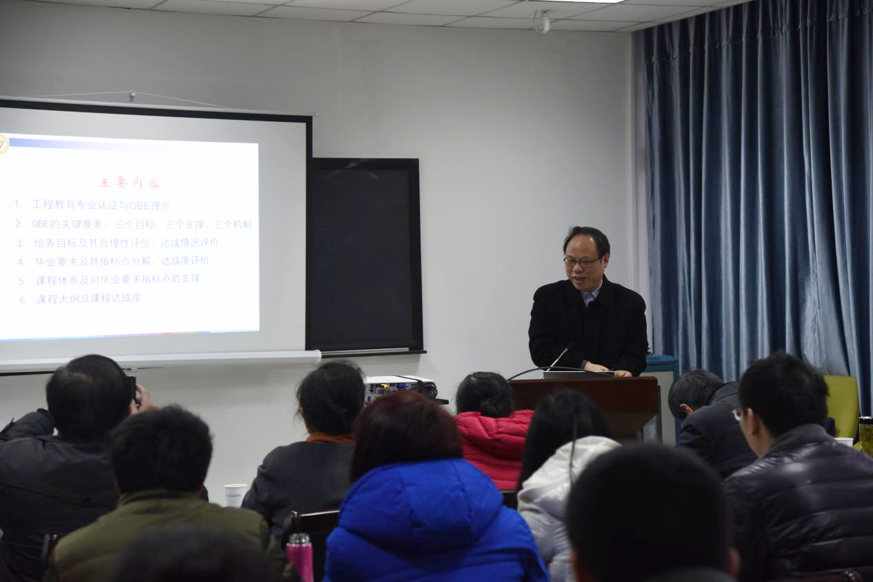 2月27日下午,中国工程教育认证专家、bat365中文官方网站机械工程学院贾民平教授应我校教务处邀请,为全校教师作了题为《基于OBE理念和工程教育认证视角谈人才培养方案修订》的主题报告。