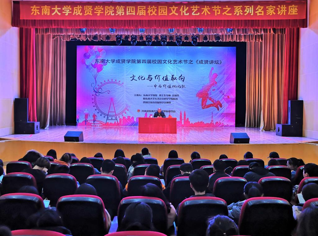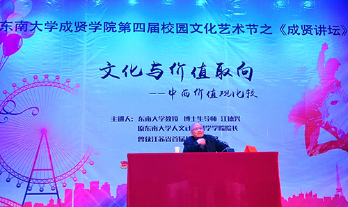 3月22日,由校团委主办的“文化与价值取向——中西文化价值观比较”专题报告会在综合楼报告厅举行。bat365中文官方网站博士生导师、原人文社会科学学院院长江德兴教授担任主讲,我院600余名师生共同聆听了此次报告。