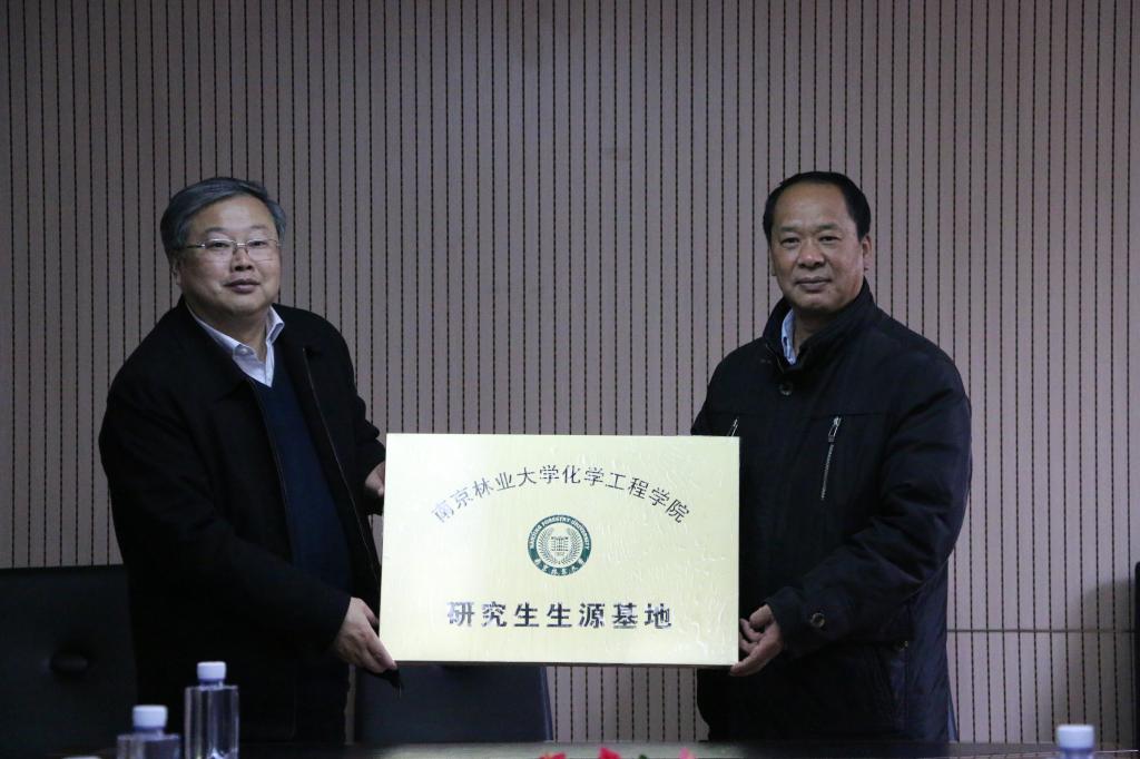 会上,林保平院长和王飞院长分别代表bat365中文官方网站制药与化学工程学院、南京林业大学化学工程学院签订了共建研究生生源基地协议,并举行了授牌仪式。会后,王飞院长为制药与化学工程学院学生作了主题为“绿色化学化工与未来”的讲座,并与2016级有考研意向的学生们进行了互动交流。