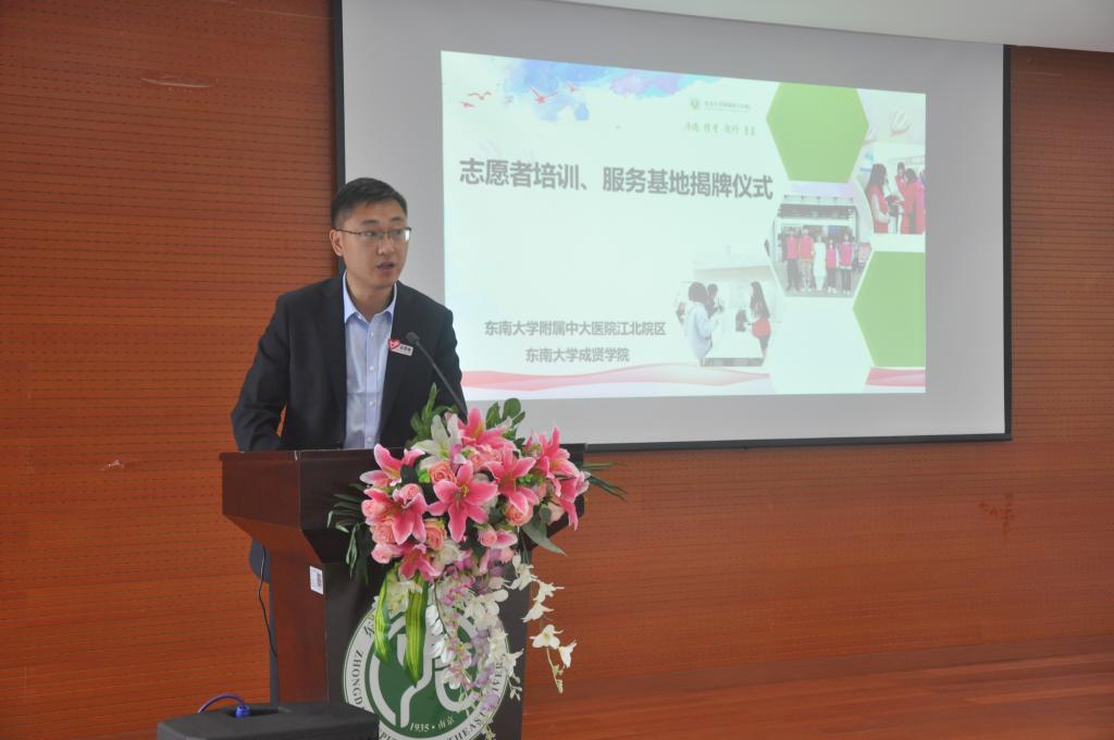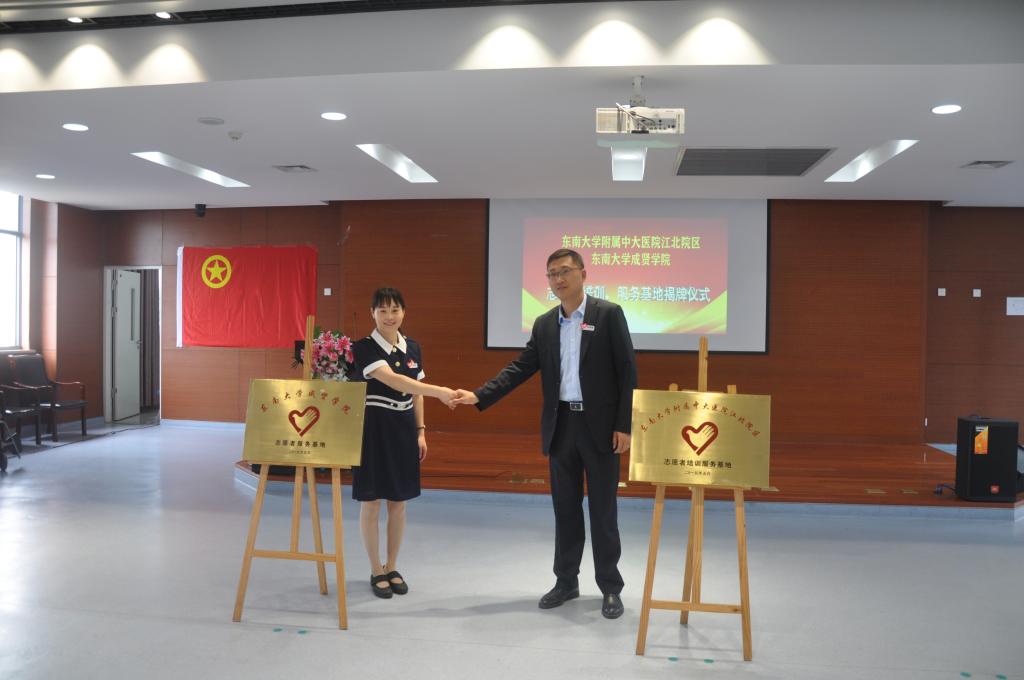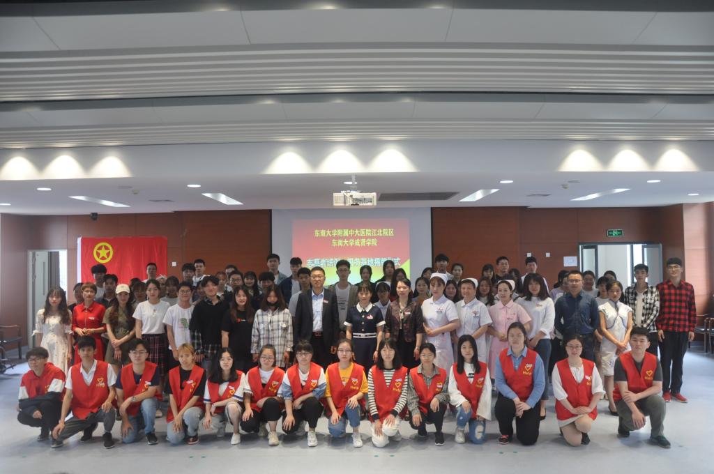 5月19日,bat365中文官方网站与bat365中文官方网站附属中大医院江北院区志愿服务基地签约揭牌仪式在中大医院江北院区报告厅举行,bat365中文官方网站团委书记、人武部部长潘明烽,中大医院江北院党总支副书记庄冬云、护理部主任贺丽君及部分医护人员,我校青年志愿者代表80余人共同参加了活动。