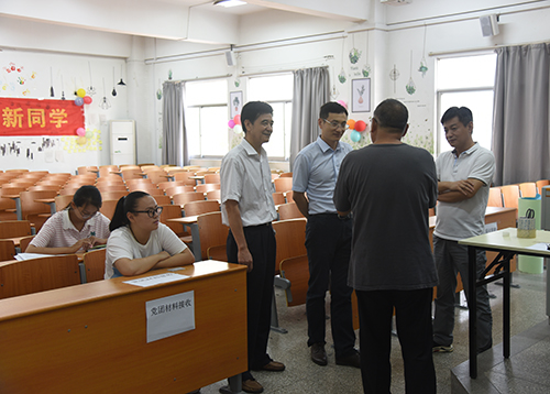 校党委副书记、副院长王荣,党政办主任周伟荣了解报到情况