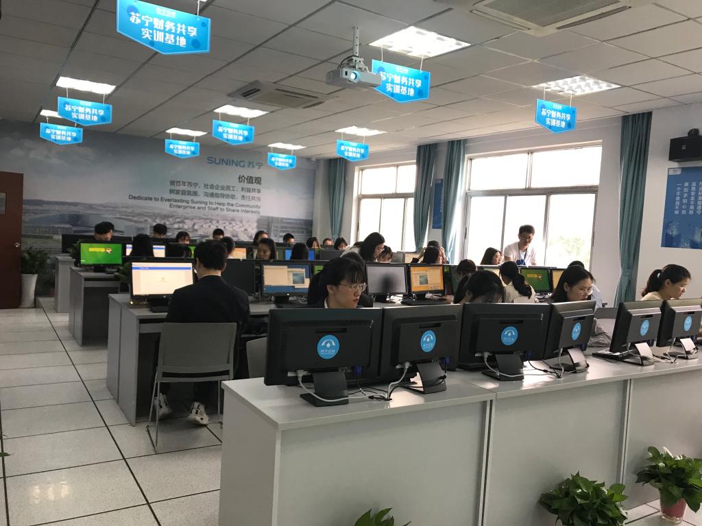 经管学院与苏宁云财开展校企合作已有数年之久,在过去良好合作的基础上,双方经过近一年的调研、交流与沟通,通过三个月的筹建,苏宁财务共享实训基地正式签约,进入试运行阶段,取得了校企深度融合的阶段性成果。该实训基地一改以往“学生进企业”的实践模式,独创“企业进校园”,将企业真实业务搬进校园,使学生在校园内即可体验真实企业工作环境,接触“真账真做”,接受企业导师直接指导,强化培养学生实践能力,提升学生就业竞争力。