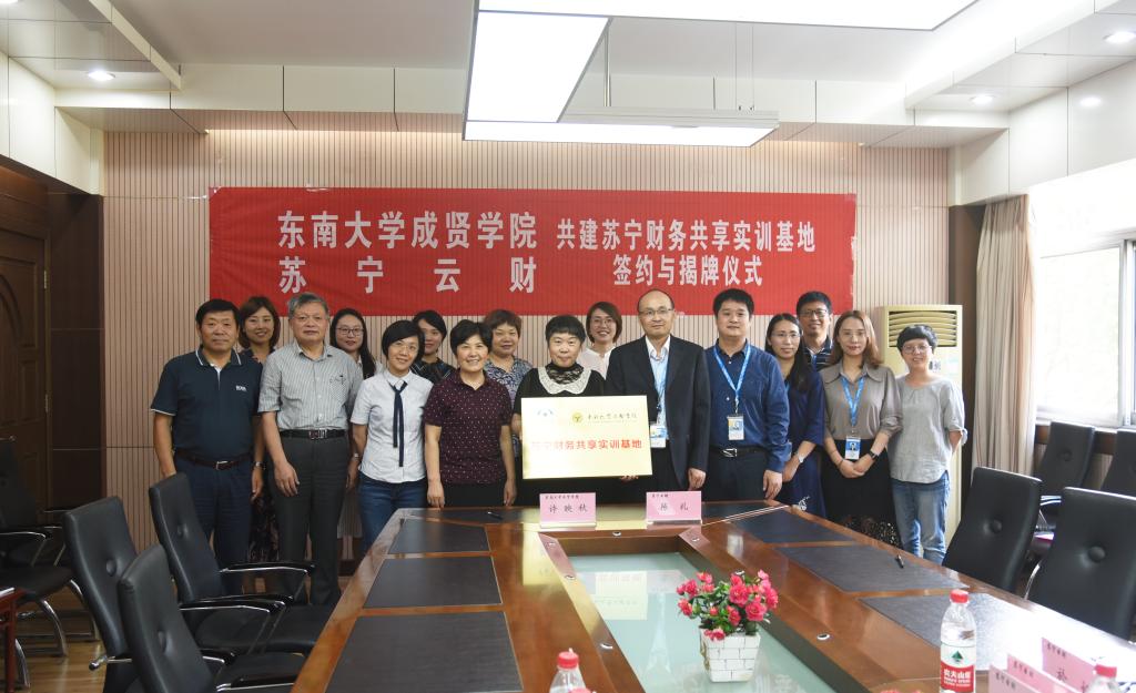 苏宁云财陈礼总经理与许映秋常务副院长随后进行了苏宁财务共享实训基地的签约和揭牌。仪式结束后,双方前往实训基地参观。