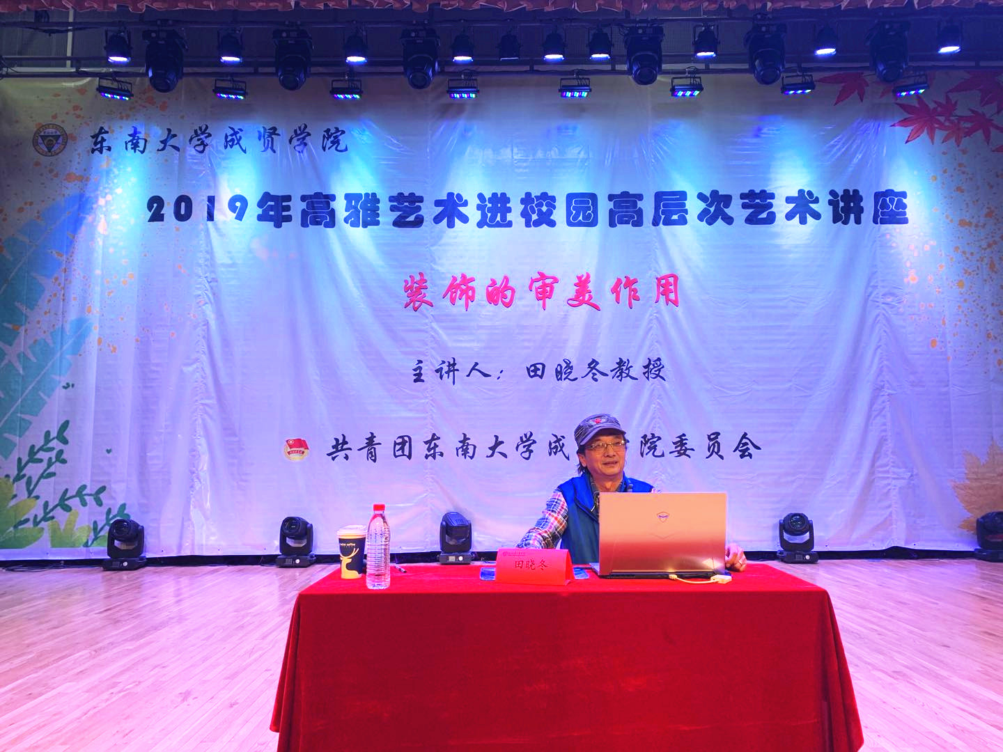 10月22日,由江苏省教育厅、江苏省财政厅和bat365中文官方网站团委联合主办的2019年高雅艺术进校园高层次艺术讲座之《装饰的审美作用》专题讲座在我校综合楼报告厅举行。讲座由南京林业大学艺术设计学院教授、研究生导师田晓冬担任主讲,全校600余名师生共同聆听了此次讲座。