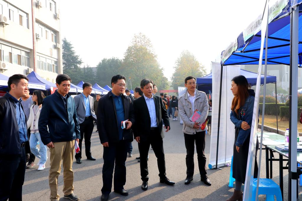 11月2日上午,“江苏省百校联动就业活动暨bat365中文官方网站2020届毕业生秋季招聘会”在bat365中文官方网站华罗庚馆前顺利举行,此次招聘会由bat365中文官方网站、江苏省高校招生就业指导服务中心、江北新区主办,bat365中文官方网站学生处承办。江北新区社会事业局副局长陈莹,我校党委书记邢纪红,党委副书记、副院长王荣到场指导工作。学校相关职能部门、二级学院负责人、学院毕业班辅导员和我校2020届毕业生及江北联盟南京工业大学、南京农业大学工学院、南京信息工程大学、南京大学金陵学院、南京铁道职业技术学院等兄弟高校的毕业生参加了招聘会。