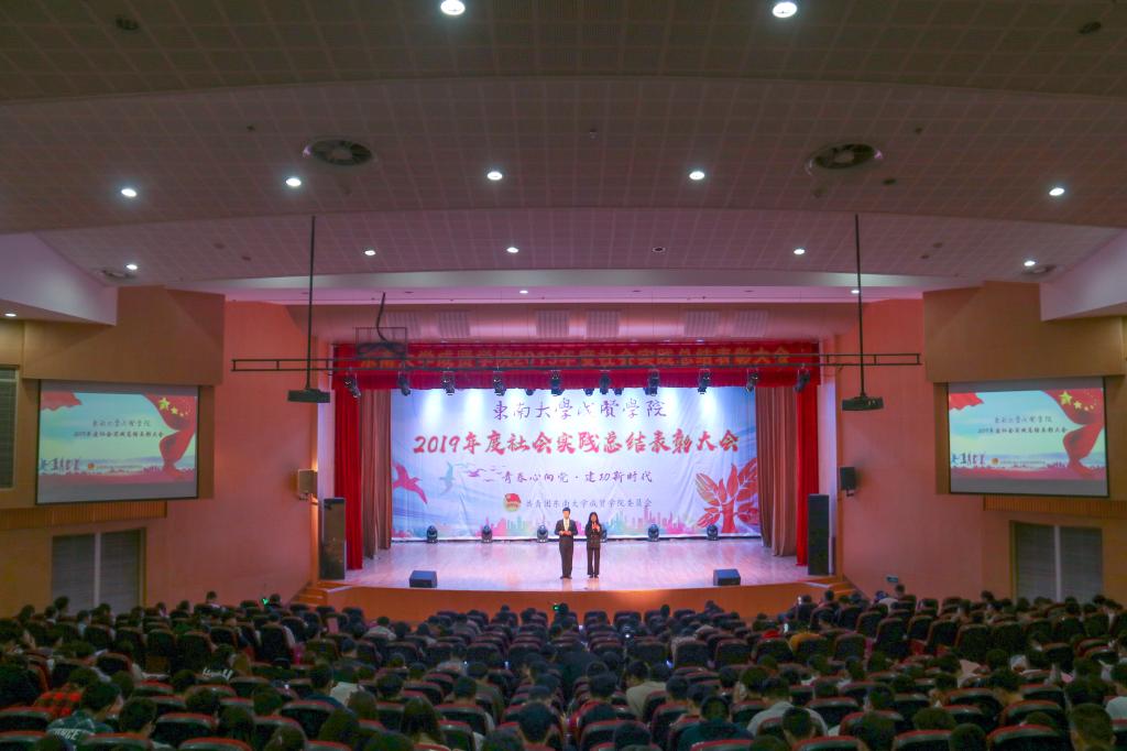 11月5日晚,bat365中文官方网站2019年度社会实践总结表彰大会在综合楼报告厅举行,学生处处长施杰、副处长苏力,各学院分团委书记及社会实践优秀团队代表、2019级新生班委约600人参加了大会。