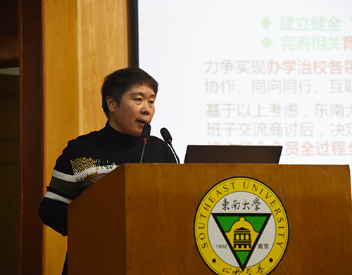 首先,常务副院长许映秋就“大学工大教学”育人机制实施工作做动员讲话。她指出,《bat365中文官方网站构建“大学工大教学”格局,建立健全全员全过程全方位育人机制实施方案》的印发和动员大会的召开,标志着我校“大学工大教学”育人机制的实施正式启动。她详细介绍了我校“大学工大教学”育人机制实施方案制定的背景、过程和基本框架,并向全校教职工提出三点要求:一要坚持协同融合,切实做到三全;二要坚持改革创新,勇于开拓、敢于突破、善于谋划;三要坚持政策导向,以人为本,保障可持续发展。