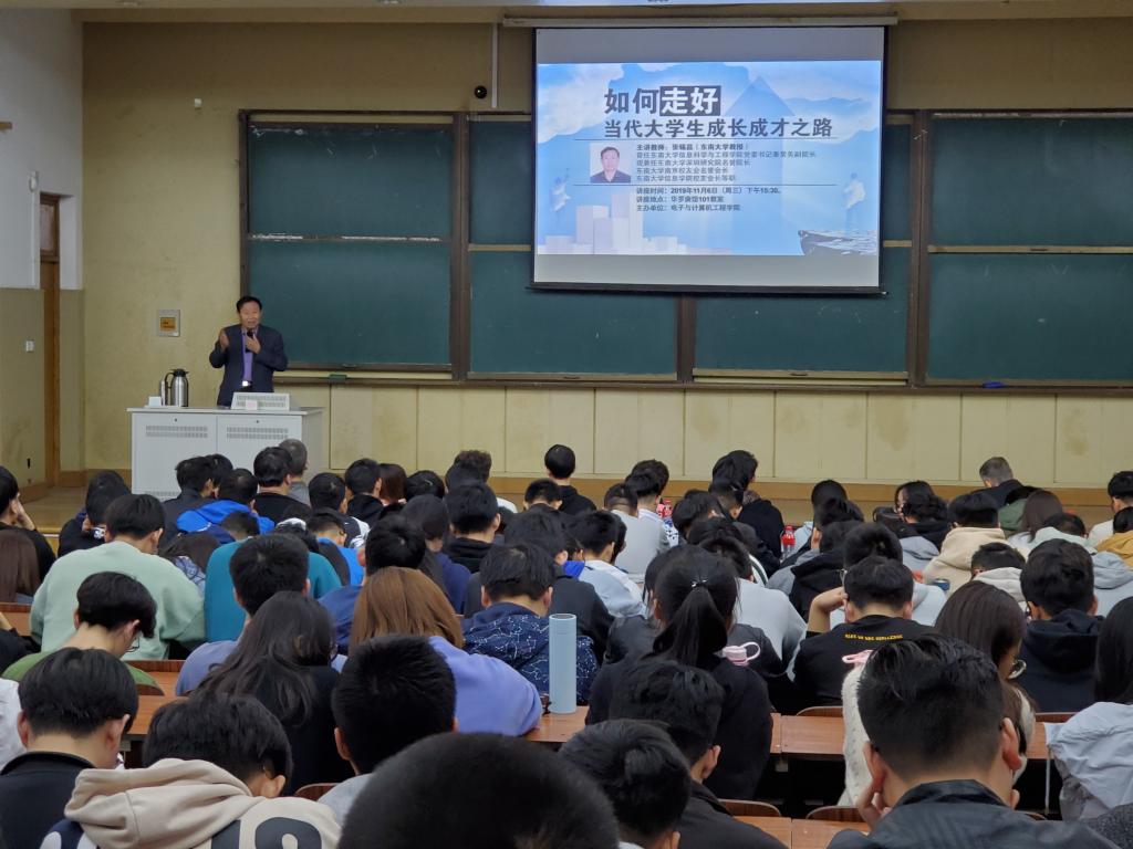 11月6日下午,bat365中文官方网站张锡昌教授在华罗庚馆101教室作“如何走好当代大学生成长成才之路”主题讲座,电子与计算机工程学院全体辅导员及300多名同学认真聆听了此次讲座。讲座由电子与计算机工程学院党总支书记季永华主持。