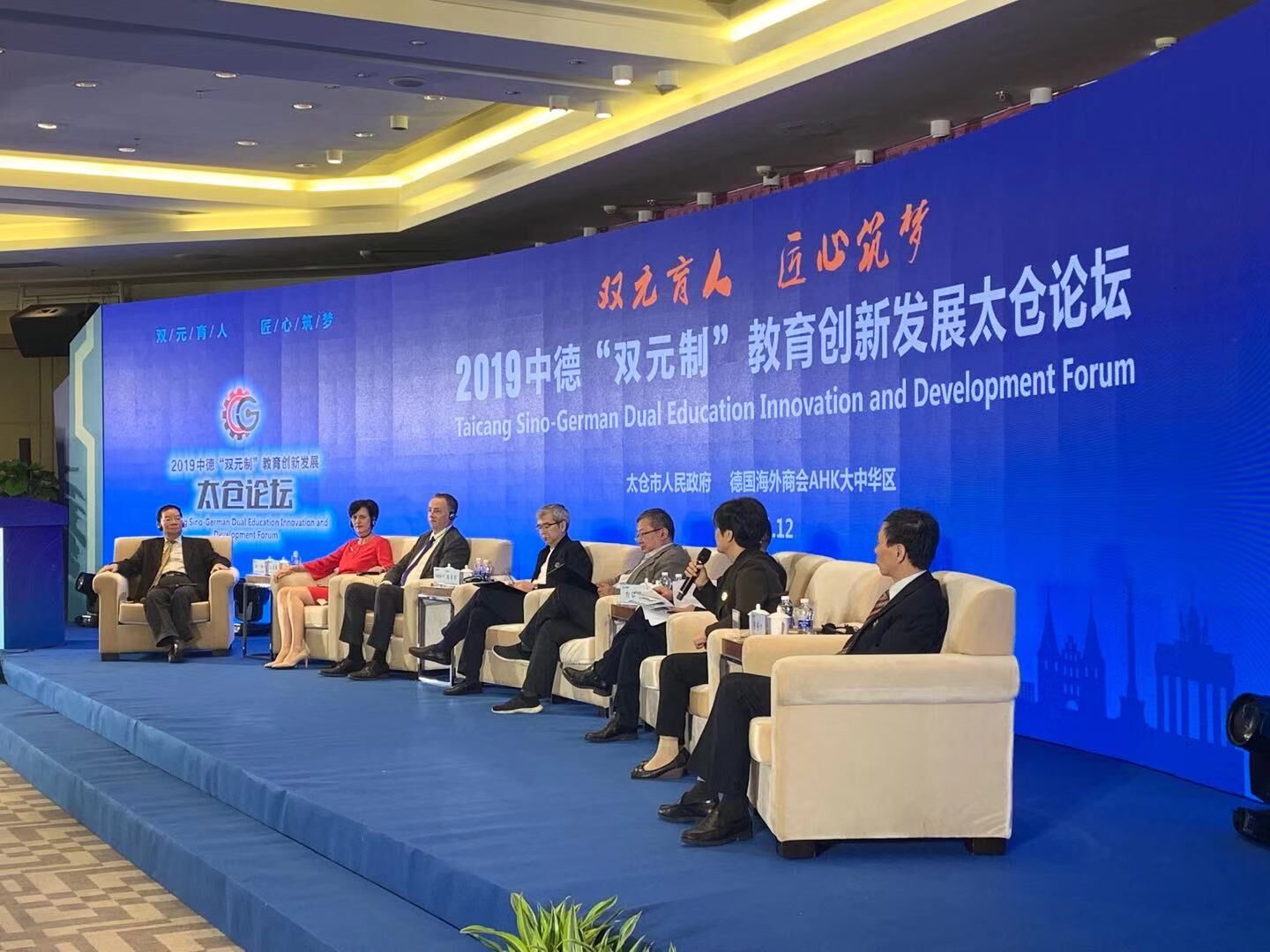 11月12日,“双元育人,匠心筑梦”——2019中德“双元制”教育创新发展太仓论坛召开。论坛由太仓市人民政府与德国海外商会AHK大中华区共同举办,太仓高新区管委会、太仓市教育局、太仓市人力资源和社会保障局共同承办。来自中德两国政府、行业协会、职业院校、企业等各方代表,就如何推动职业人才教育创新发展等话题展开交流,分享产教融合、校企合作方面的经验,对产业转型升级时代课题下如何着眼未来、培养立足地方产业发展急需的工匠人才进行深入探讨。bat365中文官方网站副院长董梅芳受邀出席论坛。