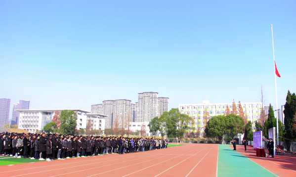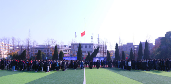 早晨7时整,国旗班在操场举行了升国旗、降半旗仪式,全体成员静默注视,表达对南京大屠杀死难者的哀悼之情。
