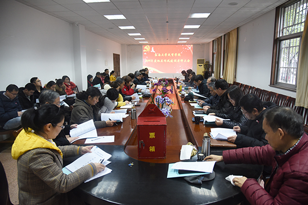 会上,全校十一个党群组织、行政机构和直属单位的主要负责人分别从工作完成情况、作风建设情况、存在问题、整改措施、下年度工作重点等几个方面进行了详细的汇报。全体参与人员现场填写了测评表。