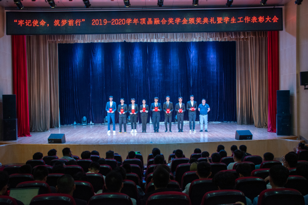 11月18日晚,“牢记使命,筑梦前行”2019-2020学年顶晶融合奖学金颁奖典礼暨表彰大会在综合楼报告厅隆重举行。顶晶融合新能源科技有限公司总经理王益先生、经理孙泽先生,机械与电气工程学院副院长李永梅、党总支副书记严红霞、系主任刘同礼、综合办主任李洪全以及全体辅导员参加表彰会,机电学院2020级500余名新生参加了会议。