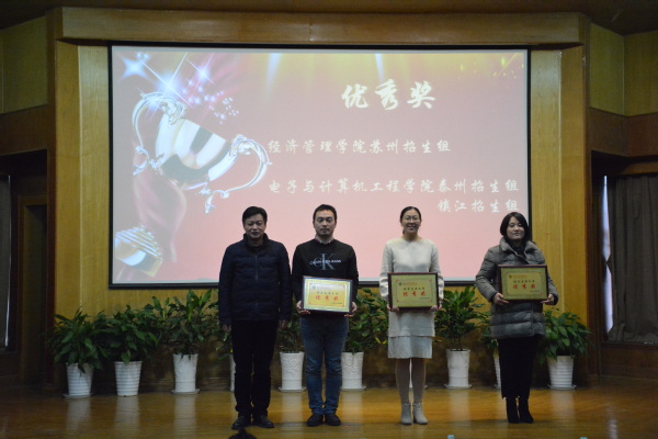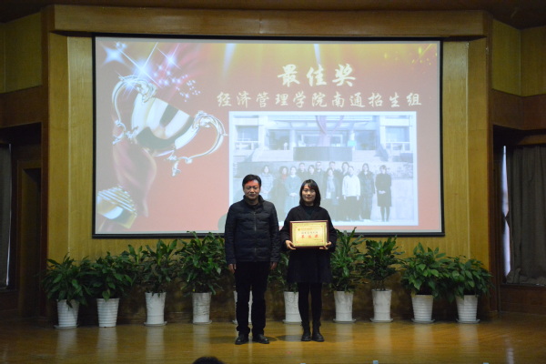 常务副院长许映秋宣读表彰决定,对2020年招生宣传工作的13个先进集体和11名优秀个人进行表彰。先进集体经济管理学院南通招生组程希羲老师和优秀个人代表胡飞雄老师分别发言,结合实际招生工作经验分享招生工作的感悟。