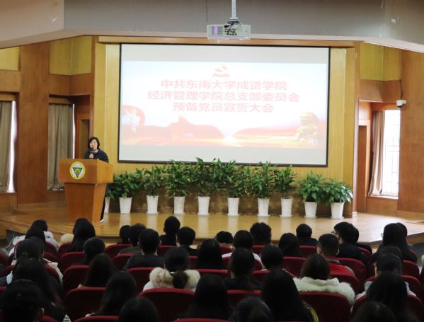 12月28日中午,经济管理学院党总支在真知馆报告厅举行预备党员入党宣誓仪式。学院党总支成员、各学生党支部书记及全体学生党员参加会议。宣誓仪式由党总支组织委员程希羲主持。
