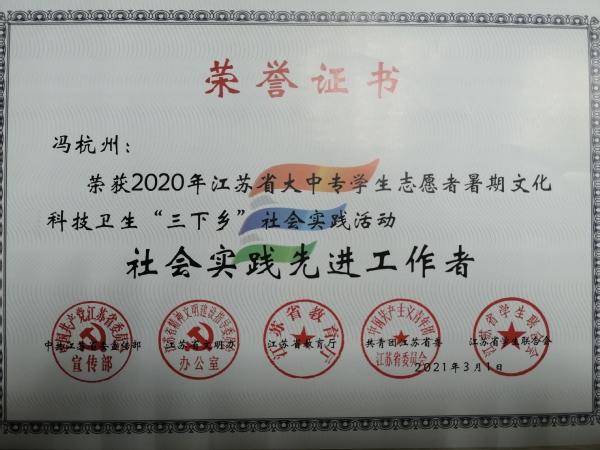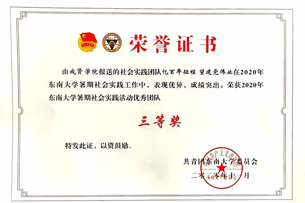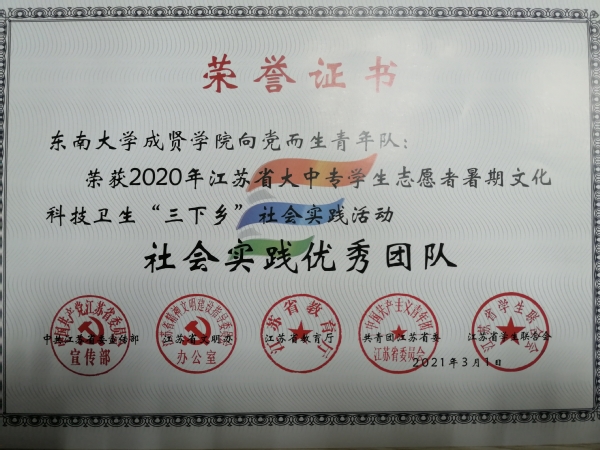 bat365中文官方网站2020年社会实践成果卓越,在江苏团省委社会实践总结表彰和bat365中文官方网站社会实践总结表彰中荣获多项荣誉。“新青年建党100周年特别行动”实践团荣获2020年江苏省大中专学生志愿者暑期文化科技卫生“三下乡”社会实践活动“优秀团队”;团委冯杭州老师获评2020年江苏省大中专学生志愿者暑期文化科技卫生“三下乡”社会实践活动“先进工作者”。“倾听树语,助力成长”实践团和“新青年建党100周年特别行动”实践团荣获2020年bat365中文官方网站暑期社会实践活动“优秀团队二等奖”,“忆百年征程,望建党伟业”实践团荣获2020年bat365中文官方网站暑期社会实践活动“优秀团队三等奖”。
