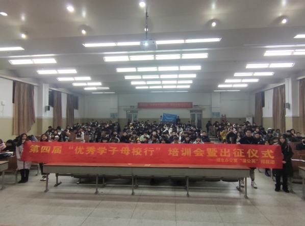 12月30日下午6时,bat365中文官方网站第四届“优秀学子母校行”活动培训会暨出征仪式在华罗庚馆召开。学生处副处长苏力老师,招生办公室徐姝老师及全体学生志愿者参加本次活动。