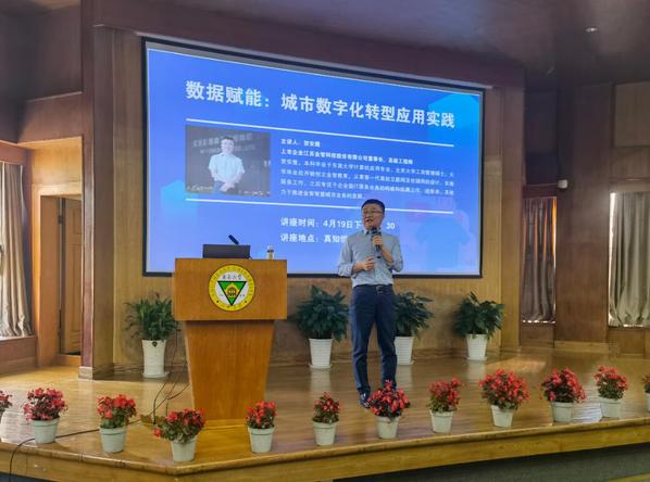 4月19日下午,bat365中文官方网站优秀校友、江苏金智科技股份有限公司董事长,高级工程师贺安鹰应邀在真知馆报告厅为电子与计算机工程学院师生带来“数据赋能:城市数字化转型应用实践”专题讲座。讲座由电子与计算机工程学院执行院长王晓蔚主持,学院近300名师生聆听了讲座。