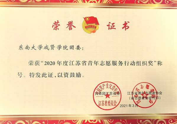 我校获“2020年度江苏省青年志愿服务行动组织奖”