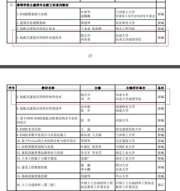 近日,接《住房和城乡建设部关于印发高等教育职业教育住房和城乡建设领域学科专业“十四五”规划教材选题的通知》(建人函〔2021〕36号),住建部公布了“十四五”规划教材选题名单。经过单位申报、专家评审,我校土木与交通工程学院郭正兴教授、刘美景副教授、刘丹副教授申请的《装配式建筑应用构件安装技术》《装配式建筑应用构件制作技术》2项教材获批。