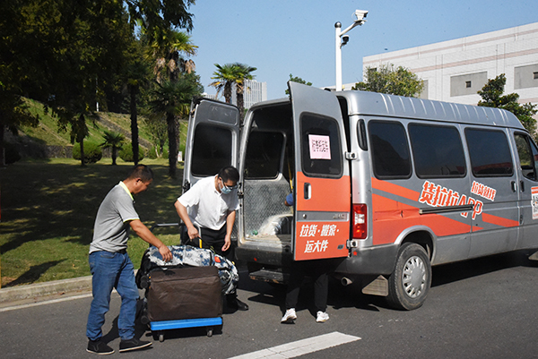 志愿者、工作人员帮忙搬运行李