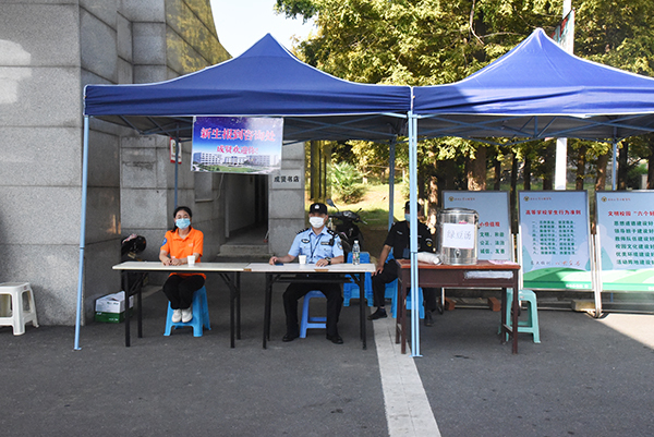 全校各单位通过前期协调会议、防控应急预演等全面科学的准备,现场严密细致地开展学生报到相关工作,层层压实疫情防控工作责任,报到现场井然有序,平稳高效。校党委书记邢纪红,常务副院长许映秋,党委副书记、副院长王荣以及相关部门负责人到现场了解学生报到情况,慰问一线工作人员,并与返校学生亲切交流。学生进校流程清晰,查验健康码、测量体温、核对身份信息等防疫工作按部就班进行;工作人员、志愿者温馨提醒,热情引导,帮助学生迅速完成报到流程,利用小推车、汽车等工具助力,帮助学生搬运行李,省时高效;后勤管理处特准备绿豆汤等解暑饮品为学生解暑降温,多措并举,为学生们提供贴心周到的服务。
