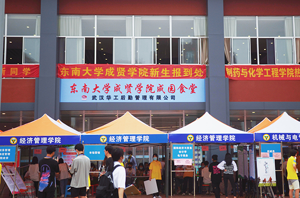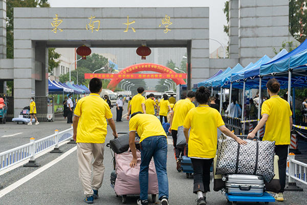 迎新当天,为做好疫情常态化防控工作,新生按照流程错峰进校。南京市公安局江北新区分局内保支队二大队刘维大队长一行、江北新区公安分局泰山新村派出所李庆伟副所长一行、江北新区公安分局交通警察支队第一大队高新中队刘梦辰中队长一行协助我校保卫工作,在校区及周边进行交通疏导、维持秩序;迎新工作人员与志愿者学生一早到岗,为新生提供热心周到的服务,利用货车、小推车搬运行李,高效快捷;各学院井然有序为新生办理各项入学手续,答疑解惑;志愿者在火车站、地铁站、校内及周边亲切为家长、学生指引道路、搬运行李;“绿色通道”工作人员给予答疑解惑,给新生以人文关怀。