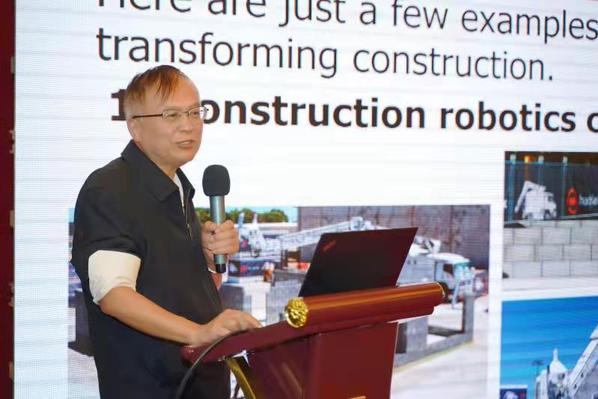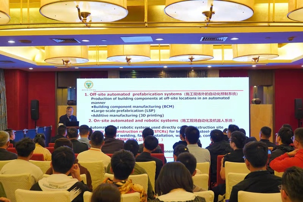 郭正兴教授紧密围绕“新基建与传统基建融合创新”,作了题为《装配式组合框架结构示范应用与智能建造构想》的报告,深入阐释了土木学科将传统基建与前沿信息技术、装配式技术、机器人技术的交叉融合之道,结合“碧桂园的博智林机器人之路思考”“国外施工企业如何走施工机器人之路”“东大-中亿丰装配式组合框架智能建造构想”三个主题与专家、领军企业代表展开深入探讨,助力“新基建”按下“加速键”。