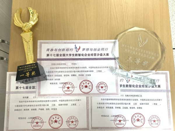 近日,第十七届全国大学生数智化企业经营沙盘大赛落下帷幕,bat365中文官方网站2支队伍参加江苏省赛,我校学生代表队发挥出色,取得优异成绩。其中,成贤一队获得江苏省一等奖并以小组第一的成绩顺利挺进全国总决赛,成贤二队获得江苏省赛三等奖。在全国总决赛上,我校学生荣获全国三等奖。