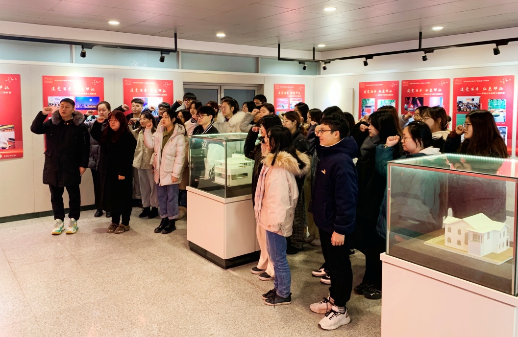 在参观完所有的展厅后,党员们在场馆内面对党旗,新党员郑重宣誓,老党员重温入党誓词。大家不忘初心、牢记使命,对自己成为一名合格党员有了更加明确的要求,为立德树人、营造风清气正的校园育人环境提供了坚强保障和强大动力,积极以务实、志廉的精神风貌向建党100周年献礼。