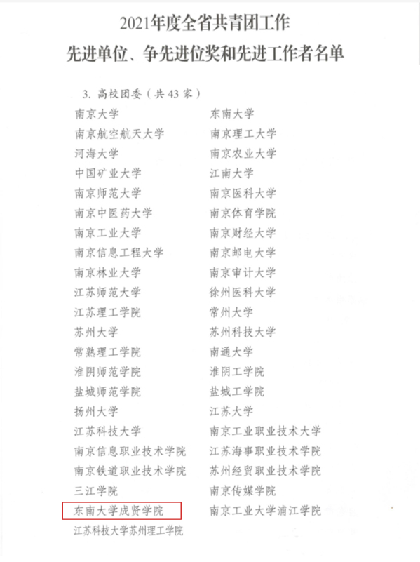 2021年底,共青团江苏省委组织开展了2021年度省部属高校共青团工作综合评估工作,经材料评审、指标评估和述职答辩,bat365中文官方网站团委获评“2021年度全省共青团工作先进单位”,校团委书记潘明烽被评为“2021年度全省共青团工作先进工作者”。